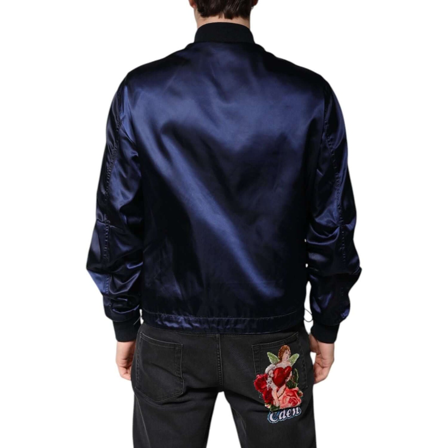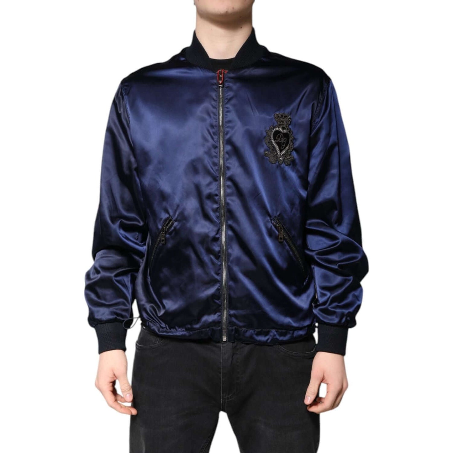 Dolce & Gabbana Blue Nylon DG Crown Full Zip Bomber Jacket