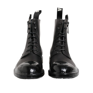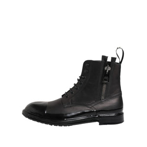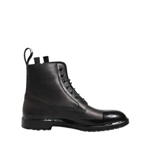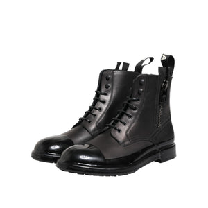 Dolce & Gabbana Brown Black Lace Up Mid Calf Men Boots Shoes