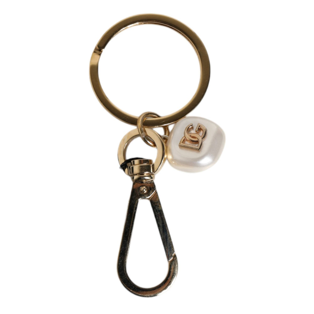 Dolce & Gabbana Chic Gold Brass Faux Pearl Letter Charm Keyring Keychain