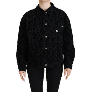 Dolce & Gabbana Cotton Black Leopard Long Sleeve Denim Jacket