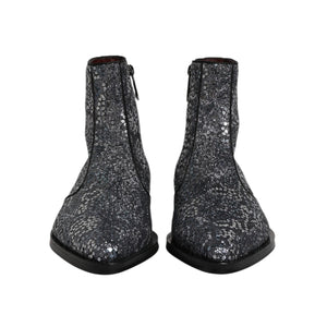 Dolce & Gabbana Dark Gray Cotton Sequined Chelsea Boots Shoes