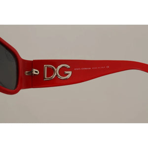 • Dolce & Gabbana DG4027 Red Crystal Black Lens Shades Sunglasses side view with DG logo on red frame.