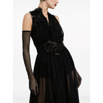 Dolce & Gabbana Long silk chiffon dress with floral appliqué