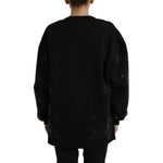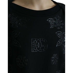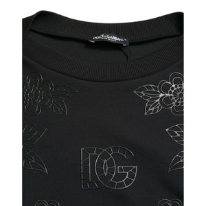 Dolce & Gabbana Black Pullover Floral Logo Applique Sweater