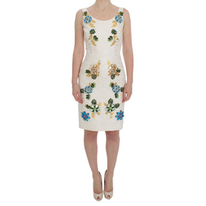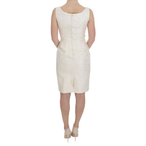 Dolce & Gabbana White Brocade Crystal Sheath Dress