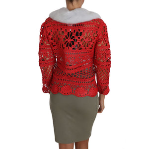 Gorgeous brand new with tags, 100% Authentic DOLCE & GABBANA red crochet knitted raffia cardigan with real fur collar.