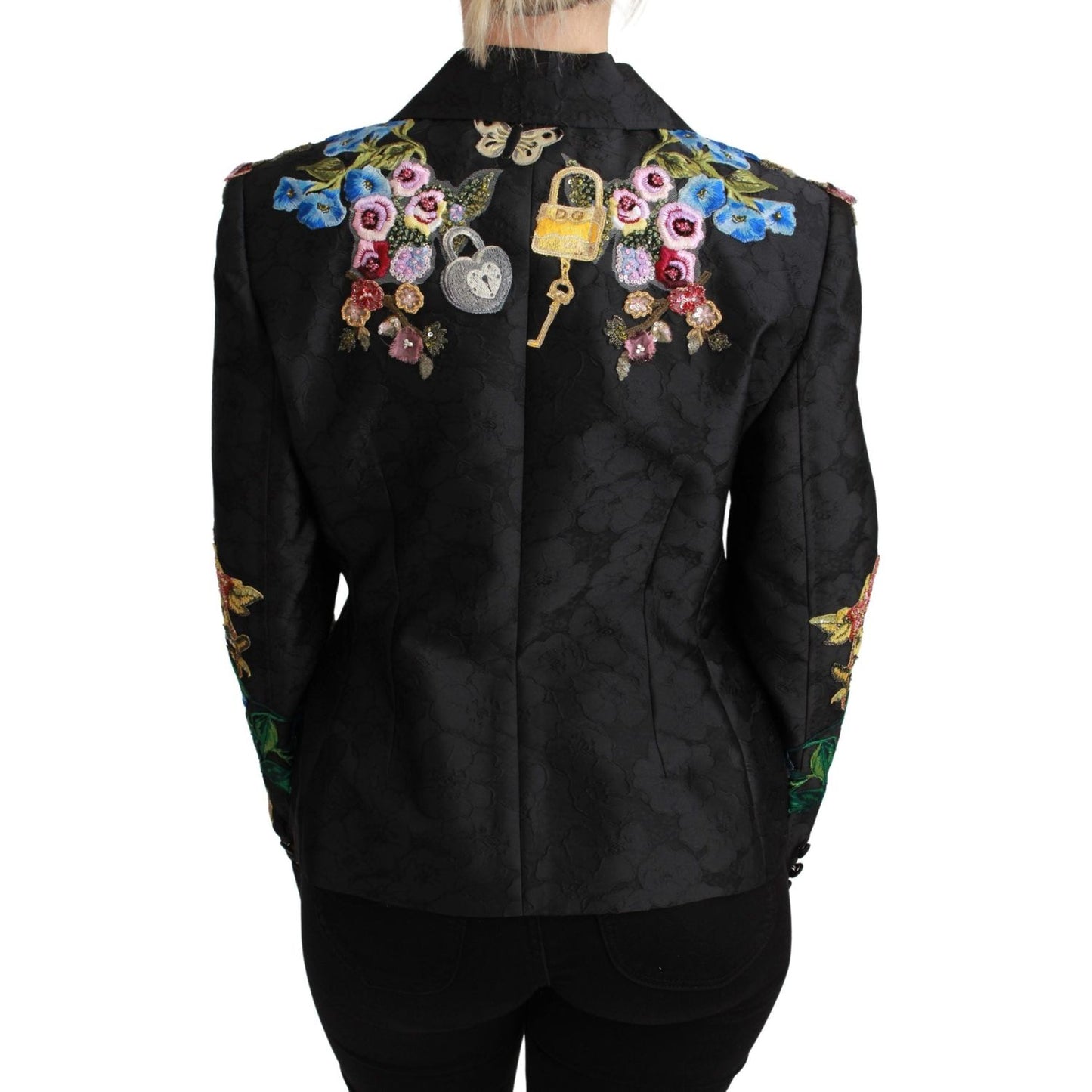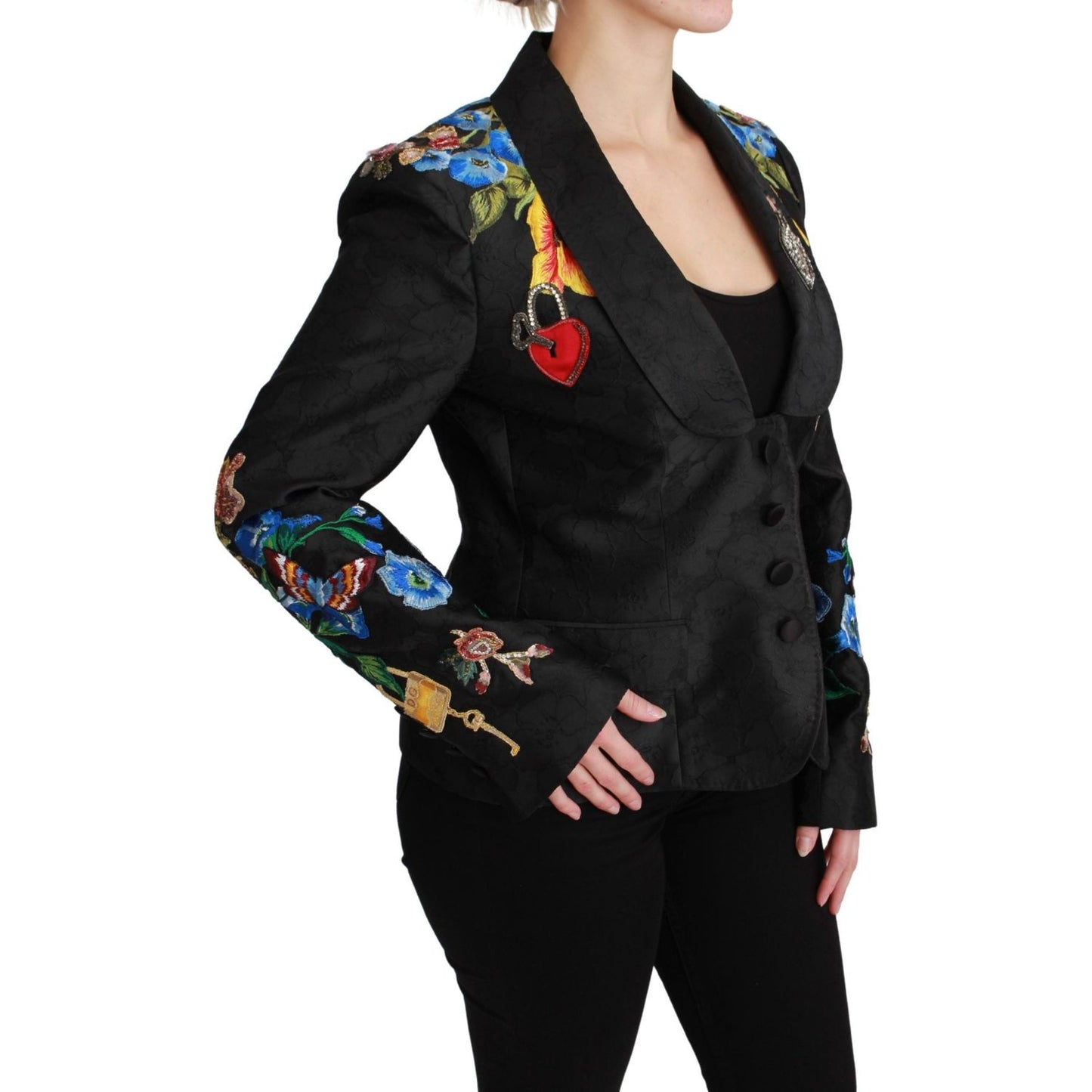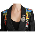 Dolce & Gabbana Black Brocade Crystal Blazer Jacket