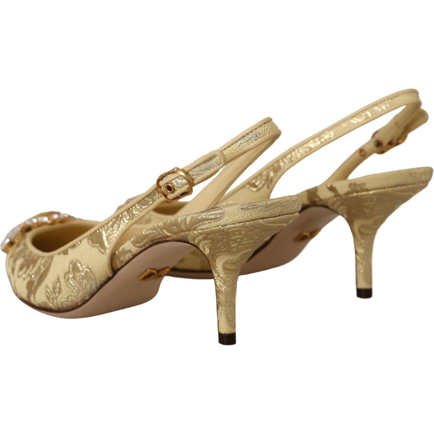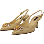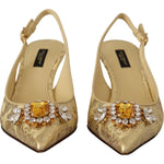 Dolce & Gabbana Gold Crystal Slingbacks Pumps Heels Shoes