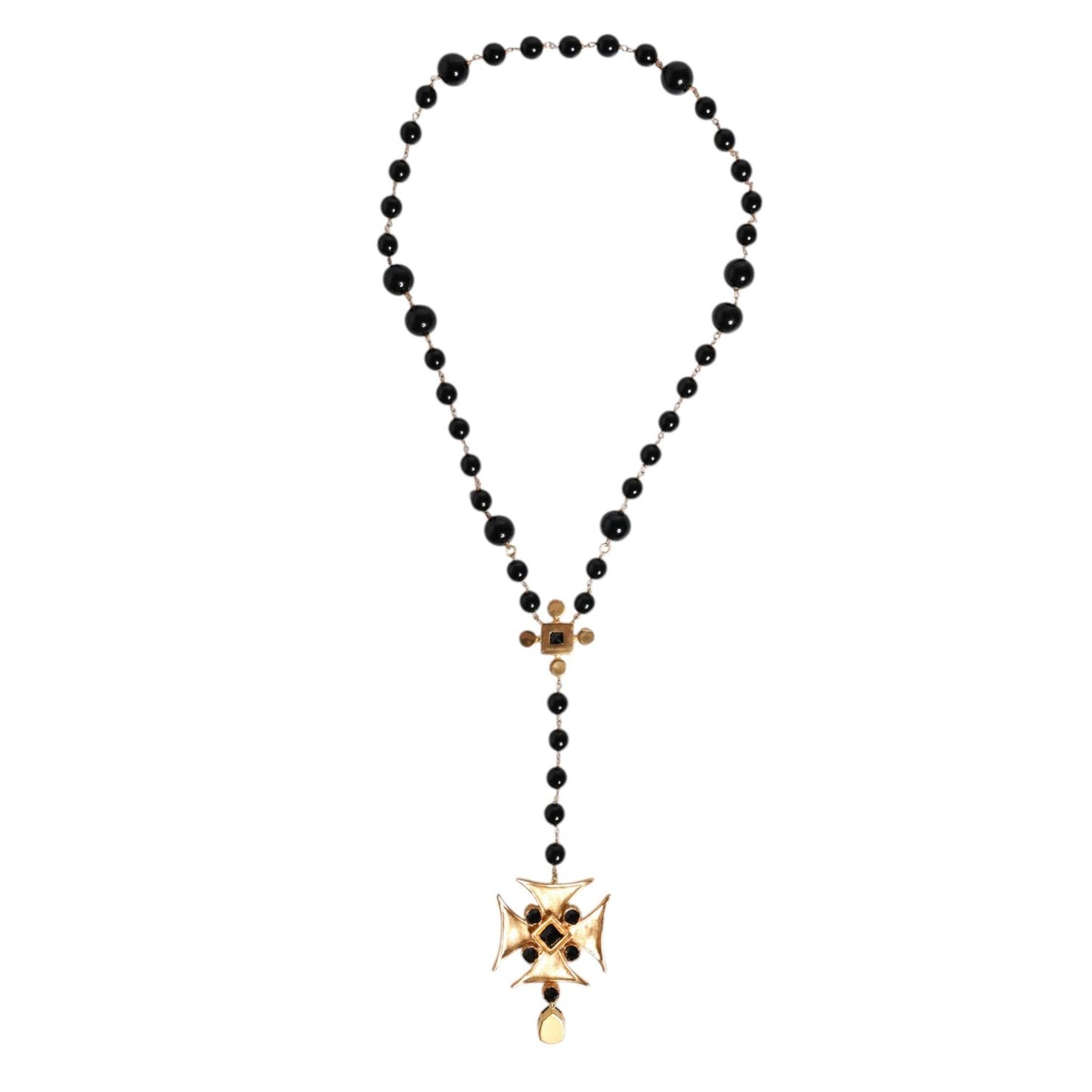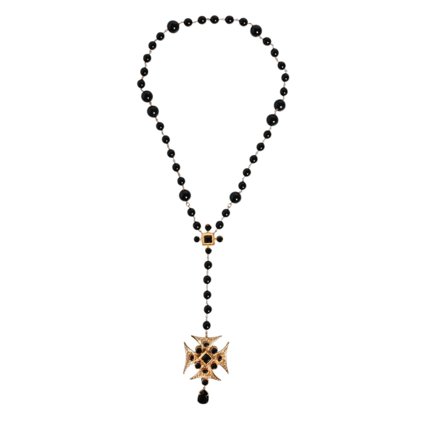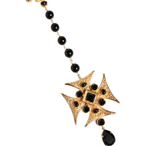 Dolce & Gabbana Gold Tone Brass Cross Black Beaded Chain Rosary Necklace