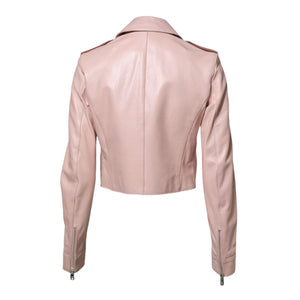 • Dolce & Gabbana Light Pink Collar Leather Women Biker Jacket