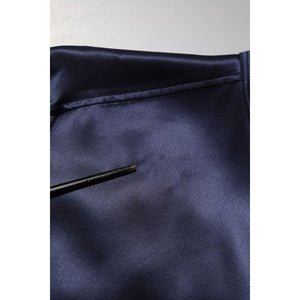 Dolce & Gabbana Navy Silk Long Sleeve Mandarin Collar Shirt