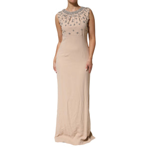 Gorgeous brand new with tags, 100% Authentic Dolce & Gabbana full-length gown in nude/ecru tone. This sleeveless evening dress is beautifully detailed with sparkling crystal embellishments and delicate beading across the bodice and neckline, creating a glamorous and timeless look. Perfect for formal occasions, red carpet events, or special evenings.