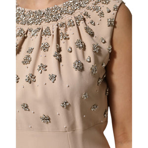 Dolce & Gabbana Nude Ecru Beaded Crystal Embellished Dress