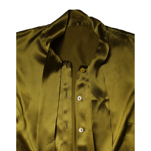 Dolce & Gabbana Olive Green Ascot Collar Long Sleeve Blouse Top