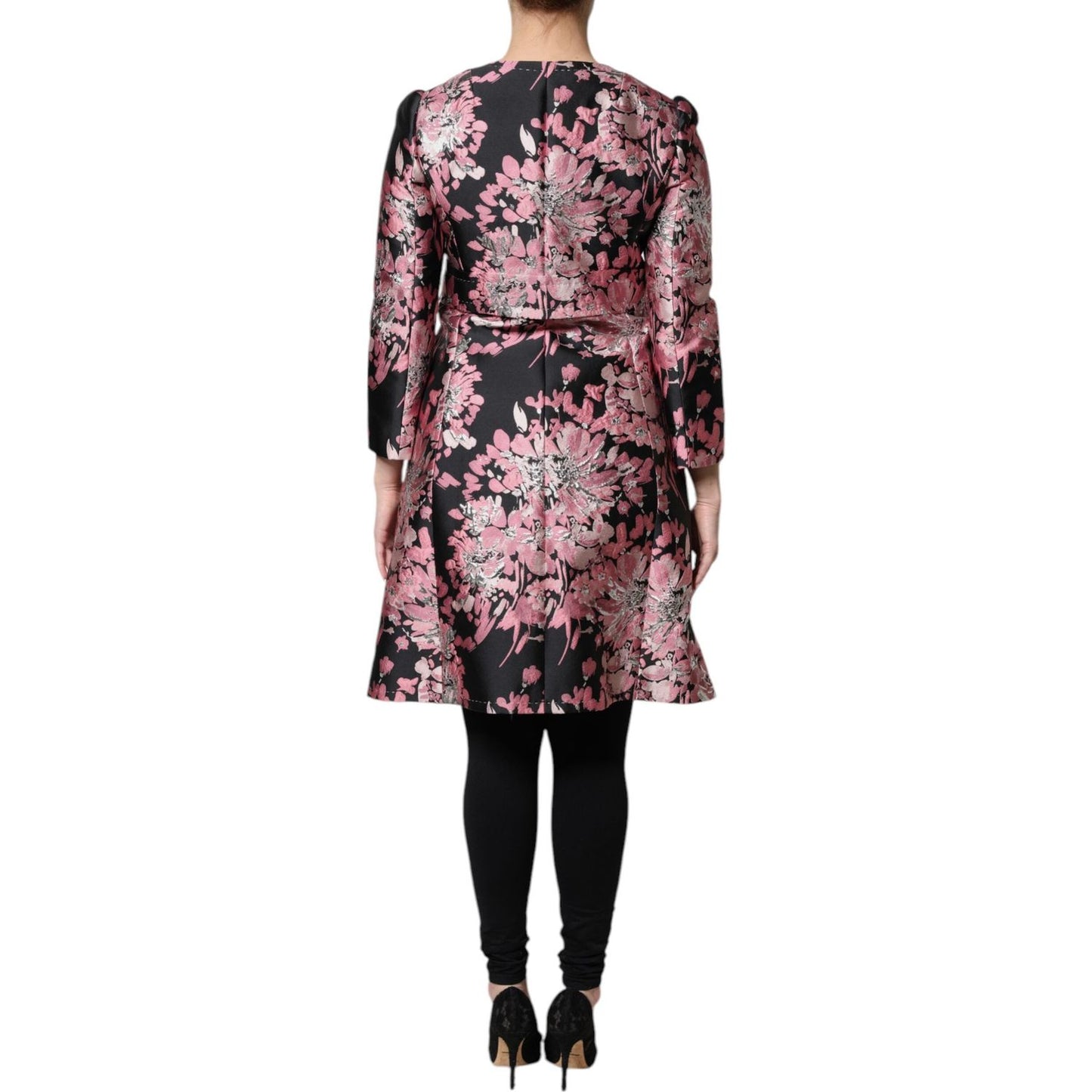 Dolce & Gabbana Pink Black Floral Brocade Trenchcoat Jacket