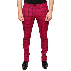 Dolce & Gabbana Pink Checkered Wool Skinny Pants