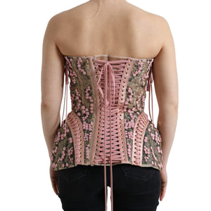 Dolce & Gabbana Pink Floral Applique Bustier Corset Top