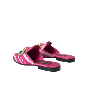Dolce & Gabbana Pink Jacquard Crystal Mule Flat Sandals Shoes