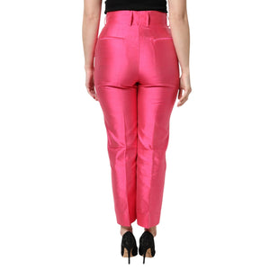 Dolce & Gabbana Pink Silk High Waist Tapered Pants