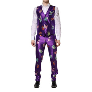 Dolce & Gabbana Purple Silk Animal Print 3 Piece Suit