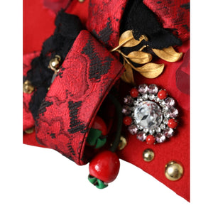 Dolce & Gabbana Red Crystal Gold Roses Brooch Embellished Hat