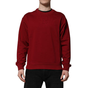 Dolce & Gabbana Red Embossed Logo Cotton Crew Neck Sweater