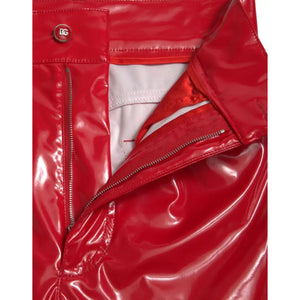 Dolce & Gabbana Red High Waist Skinny Trouser Shiny Pants