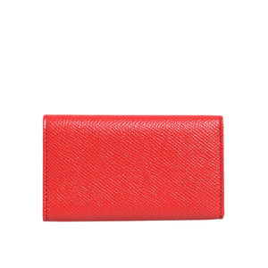 Dolce & Gabbana Red Leather Silver Metal Logo Plaque Trifold Key Holder