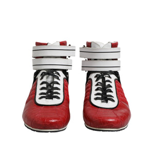Dolce & Gabbana Red Quilted Leather Lace Up Sneakers Shoes