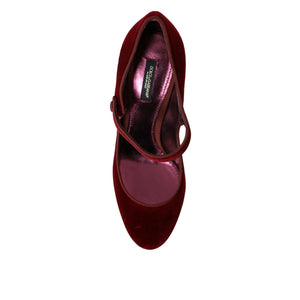 Dolce & Gabbana Red Velvet Gold Crystals Heels Mary Jane Shoes