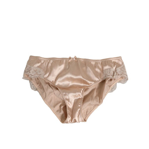 Dolce & Gabbana Rosy Beige Silk Satin Lace Trim Panty Underwear