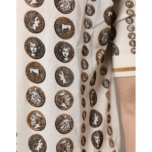 Dolce & Gabbana Silk Ivory Coin Print Logo Men Polo T-shirt