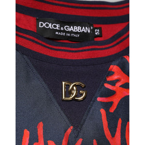 Dolce & Gabbana Silk Navy Red Coral Print Pullover Sweater with Mediterranean elegance and bold Italian style.