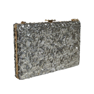 Dolce & Gabbana Silver Sequined Clutch Evening Crossbody Bag
