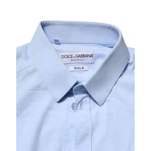 Dolce & Gabbana Sky Blue Cotton GOLD Long Sleeves Dress Shirt