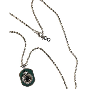Dolce & Gabbana Sterling Silver 925 Chain Bar Gem Pendant Logo Necklace