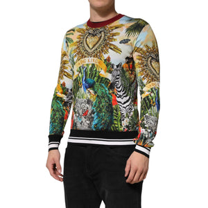 Dolce & Gabbana Tropical Heart Crown Silk Pullover Sweater