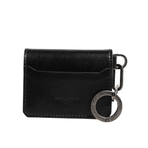 Dolce & Gabbana Wallet Black Leather Logo Embossed Key Chain Card Holder Wallet