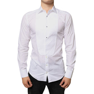Dolce & Gabbana White Bib Cotton Poplin Formal Dress Shirt