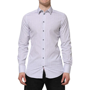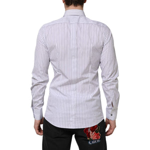 Dolce & Gabbana White Blue Striped Cotton GOLD Formal Shirt