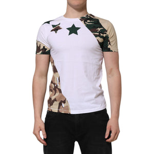 Dolce & Gabbana White Camouflage Cotton Men Crew Neck T-shirt