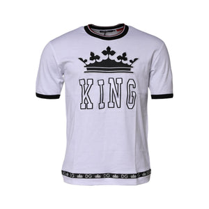 Dolce & Gabbana White Cotton Crown King Embroidery T-shirt