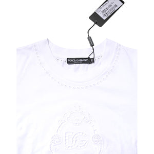 Dolce & Gabbana White Cotton Floral Logo Crew Neck T-shirt