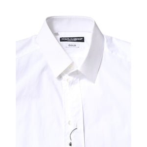 Dolce & Gabbana White Cotton GOLD Dress Formal Collared Shirt