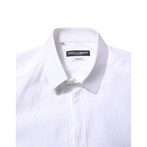 • Dolce & Gabbana White Cotton GOLD Long Sleeves Formal Shirt