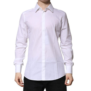• Dolce & Gabbana White Cotton GOLD Long Sleeves Formal Shirt