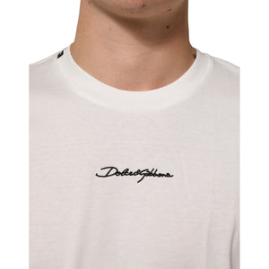 Dolce & Gabbana White Cotton Logo Print Crew Neck Men T-shirt