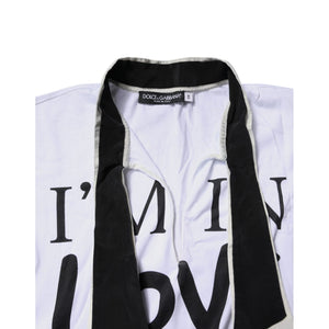 Gorgeous brand new, 100% Authentic Dolce & Gabbana t-shirt with wide ascot collar is made of thin jersey based on soft cotton and durable silk. The “I’m in love with love” print on the front shelf is a ready-made slogan for Instagram.