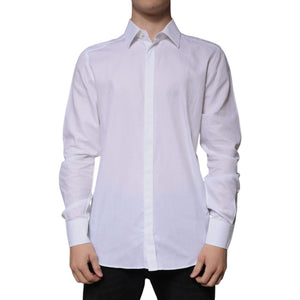 Dolce & Gabbana White Cotton Slim Fit Formal GOLD Dress Shirt