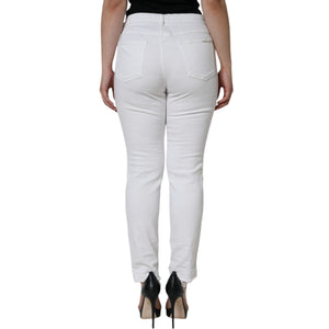 Dolce & Gabbana White Cotton Stretch Tattered Skinny Jeans